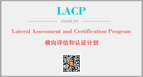 上述内容是“Lateral Assessment and Certification Program”作为“LACP”的缩写,解释为“横向评估和认证计划”时的信息,以及英文缩略词LACP所代表的英文单词,其对应的中文拼音、详细解释以及在英文中的流行度和相关分类、应用领域及应用示例等。