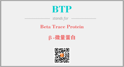 上述内容是“Beta Trace Protein”作为“BTP”的缩写,解释为“β-微量蛋白”时的信息,以及英文缩略词BTP所代表的英文单词,其对应的中文拼音、详细解释以及在英文中的流行度和相关分类、应用领域及应用示例等。