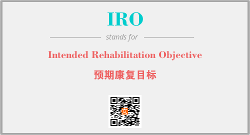 上述内容是“Intended Rehabilitation Objective”作为“IRO”的缩写,解释为“预期康复目标”时的信息,以及英文缩略词IRO所代表的英文单词,其对应的中文拼音、详细解释以及在英文中的流行度和相关分类、应用领域及应用示例等。