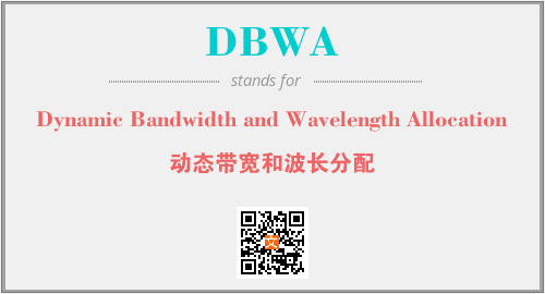 上述内容是“Dynamic Bandwidth and Wavelength Allocation”作为“DBWA”的缩写,解释为“动态带宽和波长分配”时的信息,以及英文缩略词DBWA所代表的英文单词,其对应的中文拼音、详细解释以及在英文中的流行度和相关分类、应用领域及应用示例等。