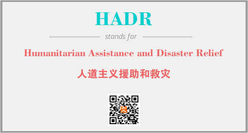 上述内容是“Humanitarian Assistance and Disaster Relief”作为“HADR”的缩写,解释为“人道主义援助和救灾”时的信息,以及英文缩略词HADR所代表的英文单词,其对应的中文拼音、详细解释以及在英文中的流行度和相关分类、应用领域及应用示例等。