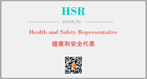 上述内容是“Health and Safety Representative”作为“HSR”的缩写,解释为“健康和安全代表”时的信息,以及英文缩略词HSR所代表的英文单词,其对应的中文拼音、详细解释以及在英文中的流行度和相关分类、应用领域及应用示例等。