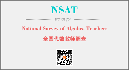 上述内容是“National Survey of Algebra Teachers”作为“NSAT”的缩写,解释为“全国代数教师调查”时的信息,以及英文缩略词NSAT所代表的英文单词,其对应的中文拼音、详细解释以及在英文中的流行度和相关分类、应用领域及应用示例等。