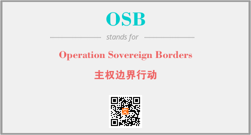 英文缩略词“OSB”经常作为“Operation Sovereign Borders”的英文缩写来使用,中文表示:“主权边界行动”。本文将详细介绍英文缩写词OSB所代表英文单词,其对应的中文拼音、详细解释以及在英语中的流行度。此外,还有关于缩略词OSB的分类、应用领域及相关应用示例等。