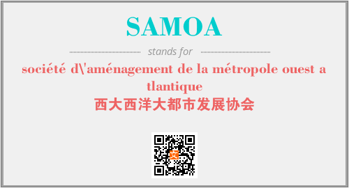 上述内容是“société d\'aménagement de la métropole ouest atlantique”作为“SAMOA”的缩写,解释为“西大西洋大都市发展协会”时的信息,以及英文缩略词SAMOA所代表的英文单词,其对应的中文拼音、详细解释以及在英文中的流行度和相关分类、应用领域及应用示例等。