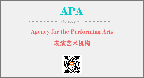 英文缩略词“APA”经常作为“Agency for the Performing Arts”的英文缩写来使用,中文表示:“表演艺术机构”。本文将详细介绍英文缩写词APA所代表英文单词,其对应的中文拼音、详细解释以及在英语中的流行度。此外,还有关于缩略词APA的分类、应用领域及相关应用示例等。