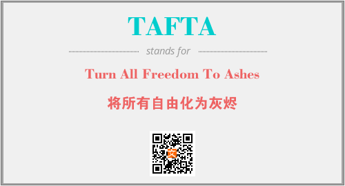 英文缩略词“TAFTA”经常作为“Turn All Freedom To Ashes”的英文缩写来使用,中文表示:“将所有自由化为灰烬”。本文将详细介绍英文缩写词TAFTA所代表英文单词,其对应的中文拼音、详细解释以及在英语中的流行度。此外,还有关于缩略词TAFTA的分类、应用领域及相关应用示例等。