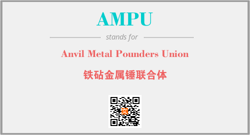 上述内容是“Anvil Metal Pounders Union”作为“AMPU”的缩写,解释为“铁砧金属锤联合体”时的信息,以及英文缩略词AMPU所代表的英文单词,其对应的中文拼音、详细解释以及在英文中的流行度和相关分类、应用领域及应用示例等。