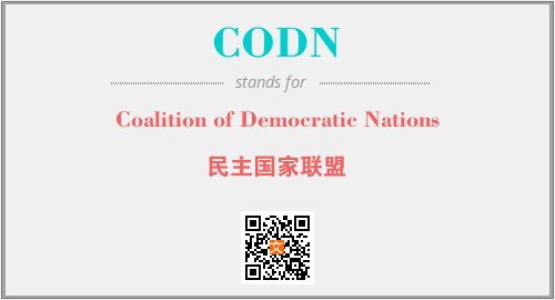 上述内容是“Coalition of Democratic Nations”作为“CODN”的缩写,解释为“民主国家联盟”时的信息,以及英文缩略词CODN所代表的英文单词,其对应的中文拼音、详细解释以及在英文中的流行度和相关分类、应用领域及应用示例等。