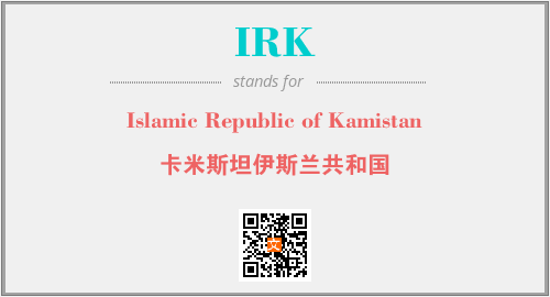 英文缩略词“IRK”经常作为“Islamic Republic of Kamistan”的英文缩写来使用,中文表示:“卡米斯坦伊斯兰共和国”。本文将详细介绍英文缩写词IRK所代表英文单词,其对应的中文拼音、详细解释以及在英语中的流行度。此外,还有关于缩略词IRK的分类、应用领域及相关应用示例等。