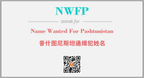 上述内容是“Name Wanted For Pashtunistan”作为“NWFP”的缩写,解释为“普什图尼斯坦通缉犯姓名”时的信息,以及英文缩略词NWFP所代表的英文单词,其对应的中文拼音、详细解释以及在英文中的流行度和相关分类、应用领域及应用示例等。