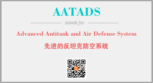 英文缩略词“AATADS”经常作为“Advanced Antitank and Air Defense System”的英文缩写来使用,中文表示:“先进的反坦克防空系统”。本文将详细介绍英文缩写词AATADS所代表英文单词,其对应的中文拼音、详细解释以及在英语中的流行度。此外,还有关于缩略词AATADS的分类、应用领域及相关应用示例等。