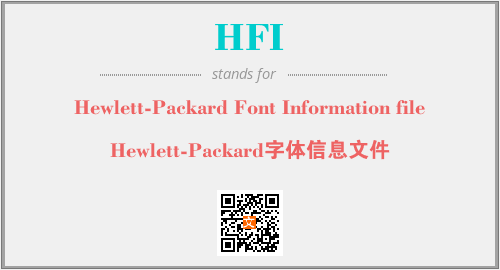英文缩略词“HFI”经常作为“Hewlett-Packard Font Information file”的英文缩写来使用,中文表示:“Hewlett-Packard字体信息文件”。本文将详细介绍英文缩写词HFI所代表英文单词,其对应的中文拼音、详细解释以及在英语中的流行度。此外,还有关于缩略词HFI的分类、应用领域及相关应用示例等。