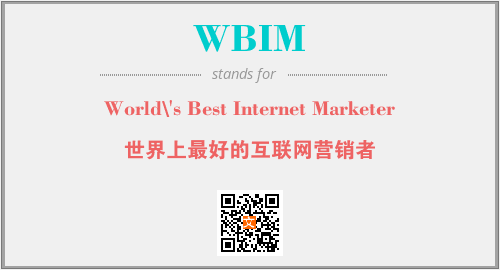 英文缩略词“WBIM”经常作为“World\'s Best Internet Marketer”的英文缩写来使用,中文表示:“世界上最好的互联网营销者”。本文将详细介绍英文缩写词WBIM所代表英文单词,其对应的中文拼音、详细解释以及在英语中的流行度。此外,还有关于缩略词WBIM的分类、应用领域及相关应用示例等。