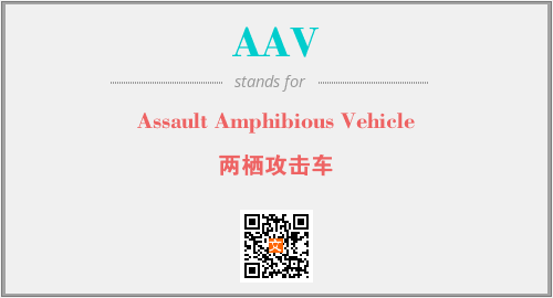 英文缩略词“AAV”经常作为“Assault Amphibious Vehicle”的英文缩写来使用,中文表示:“两栖攻击车”。本文将详细介绍英文缩写词AAV所代表英文单词,其对应的中文拼音、详细解释以及在英语中的流行度。此外,还有关于缩略词AAV的分类、应用领域及相关应用示例等。