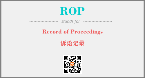英文缩略词“ROP”经常作为“Record of Proceedings”的英文缩写来使用,中文表示:“诉讼记录”。本文将详细介绍英文缩写词ROP所代表英文单词,其对应的中文拼音、详细解释以及在英语中的流行度。此外,还有关于缩略词ROP的分类、应用领域及相关应用示例等。