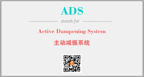 以上为Active Dampening System英文缩略词ADS的中文解释,以及该英文缩写在英语的流行度、分类和应用领域方面的信息。
