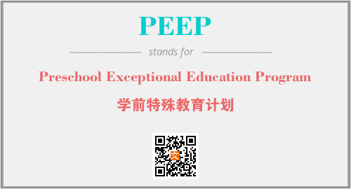 以上为Preschool Exceptional Education Program英文缩略词PEEP的中文解释,以及该英文缩写在英语的流行度、分类和应用领域方面的信息。