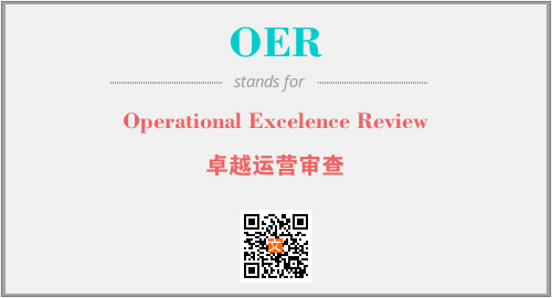 英文缩略词“OER”经常作为“Operational Excelence Review”的英文缩写来使用,中文表示:“卓越运营审查”。本文将详细介绍英文缩写词OER所代表英文单词,其对应的中文拼音、详细解释以及在英语中的流行度。此外,还有关于缩略词OER的分类、应用领域及相关应用示例等。