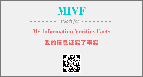 上述内容是“My Information Verifies Facts”作为“MIVF”的缩写,解释为“我的信息证实了事实”时的信息,以及英文缩略词MIVF所代表的英文单词,其对应的中文拼音、详细解释以及在英文中的流行度和相关分类、应用领域及应用示例等。