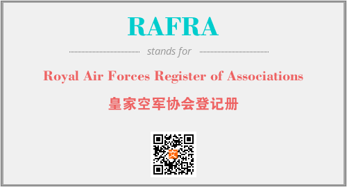 以上为Royal Air Forces Register of Associations英文缩略词RAFRA的中文解释,以及该英文缩写在英语的流行度、分类和应用领域方面的信息。