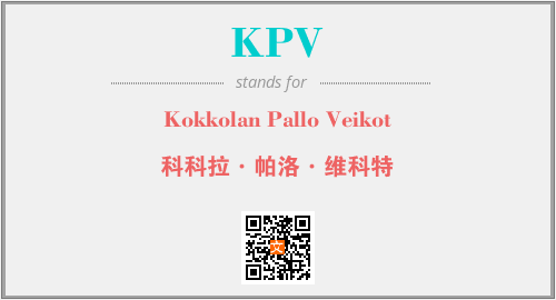 英文缩略词“KPV”经常作为“Kokkolan Pallo Veikot”的英文缩写来使用,中文表示:“科科拉·帕洛·维科特”。本文将详细介绍英文缩写词KPV所代表英文单词,其对应的中文拼音、详细解释以及在英语中的流行度。此外,还有关于缩略词KPV的分类、应用领域及相关应用示例等。