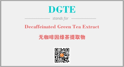上述内容是“Decaffeinated Green Tea Extract”作为“DGTE”的缩写,解释为“无咖啡因绿茶提取物”时的信息,以及英文缩略词DGTE所代表的英文单词,其对应的中文拼音、详细解释以及在英文中的流行度和相关分类、应用领域及应用示例等。