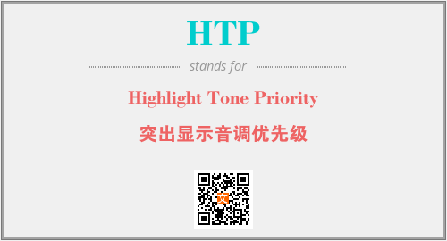 上述内容是“Highlight Tone Priority”作为“HTP”的缩写,解释为“突出显示音调优先级”时的信息,以及英文缩略词HTP所代表的英文单词,其对应的中文拼音、详细解释以及在英文中的流行度和相关分类、应用领域及应用示例等。