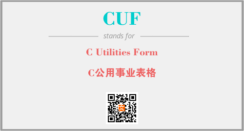 上述内容是“C Utilities Form”作为“CUF”的缩写,解释为“C公用事业表格”时的信息,以及英文缩略词CUF所代表的英文单词,其对应的中文拼音、详细解释以及在英文中的流行度和相关分类、应用领域及应用示例等。