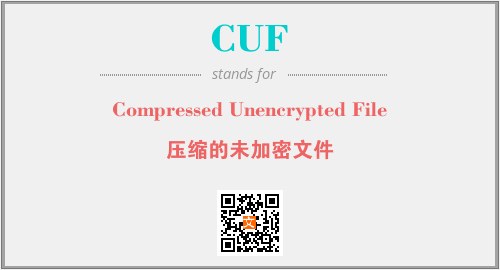 英文缩略词“CUF”经常作为“Compressed Unencrypted File”的英文缩写来使用,中文表示:“压缩的未加密文件”。本文将详细介绍英文缩写词CUF所代表英文单词,其对应的中文拼音、详细解释以及在英语中的流行度。此外,还有关于缩略词CUF的分类、应用领域及相关应用示例等。