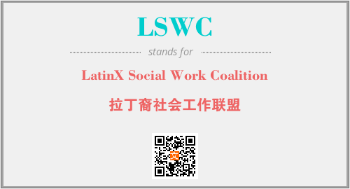 上述内容是“LatinX Social Work Coalition”作为“LSWC”的缩写,解释为“拉丁裔社会工作联盟”时的信息,以及英文缩略词LSWC所代表的英文单词,其对应的中文拼音、详细解释以及在英文中的流行度和相关分类、应用领域及应用示例等。