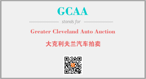 上述内容是“Greater Cleveland Auto Auction”作为“GCAA”的缩写,解释为“大克利夫兰汽车拍卖”时的信息,以及英文缩略词GCAA所代表的英文单词,其对应的中文拼音、详细解释以及在英文中的流行度和相关分类、应用领域及应用示例等。