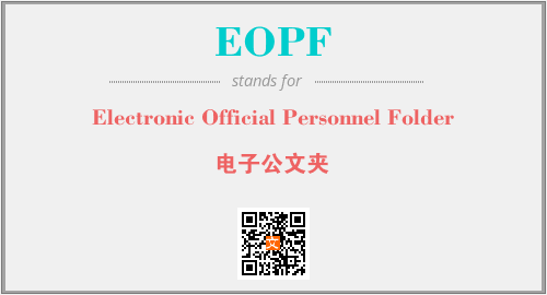 上述内容是“Electronic Official Personnel Folder”作为“EOPF”的缩写,解释为“电子公文夹”时的信息,以及英文缩略词EOPF所代表的英文单词,其对应的中文拼音、详细解释以及在英文中的流行度和相关分类、应用领域及应用示例等。