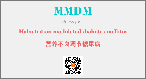 英文缩略词“MMDM”经常作为“Malnutrition modulated diabetes mellitus”的英文缩写来使用,中文表示:“营养不良调节糖尿病”。本文将详细介绍英文缩写词MMDM所代表英文单词,其对应的中文拼音、详细解释以及在英语中的流行度。此外,还有关于缩略词MMDM的分类、应用领域及相关应用示例等。