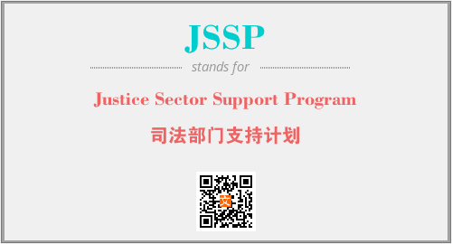 上述内容是“Justice Sector Support Program”作为“JSSP”的缩写,解释为“司法部门支持计划”时的信息,以及英文缩略词JSSP所代表的英文单词,其对应的中文拼音、详细解释以及在英文中的流行度和相关分类、应用领域及应用示例等。