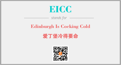 上述内容是“Edinburgh Is Cocking Cold”作为“EICC”的缩写,解释为“爱丁堡冷得要命”时的信息,以及英文缩略词EICC所代表的英文单词,其对应的中文拼音、详细解释以及在英文中的流行度和相关分类、应用领域及应用示例等。