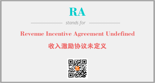 上述内容是“Revenue Incentive Agreement Undefined”作为“RA”的缩写,解释为“收入激励协议未定义”时的信息,以及英文缩略词RA所代表的英文单词,其对应的中文拼音、详细解释以及在英文中的流行度和相关分类、应用领域及应用示例等。