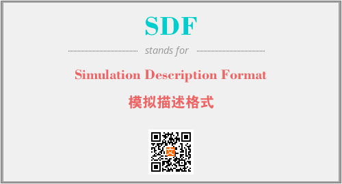 英文缩略词“SDF”经常作为“Simulation Description Format”的英文缩写来使用,中文表示:“模拟描述格式”。本文将详细介绍英文缩写词SDF所代表英文单词,其对应的中文拼音、详细解释以及在英语中的流行度。此外,还有关于缩略词SDF的分类、应用领域及相关应用示例等。