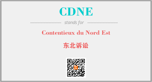 以上为Contentieux du Nord Est英文缩略词CDNE的中文解释,以及该英文缩写在英语的流行度、分类和应用领域方面的信息。