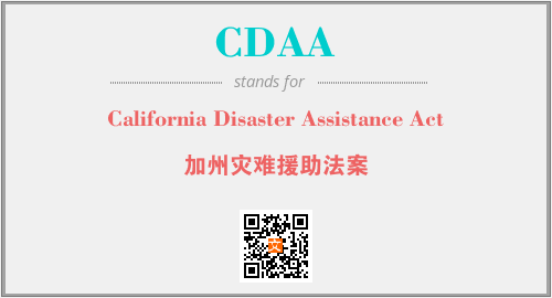上述内容是“California Disaster Assistance Act”作为“CDAA”的缩写,解释为“加州灾难援助法案”时的信息,以及英文缩略词CDAA所代表的英文单词,其对应的中文拼音、详细解释以及在英文中的流行度和相关分类、应用领域及应用示例等。