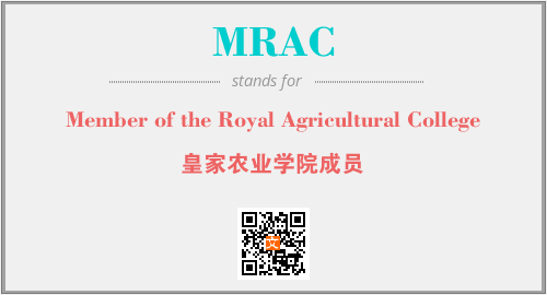 上述内容是“Member of the Royal Agricultural College”作为“MRAC”的缩写,解释为“皇家农业学院成员”时的信息,以及英文缩略词MRAC所代表的英文单词,其对应的中文拼音、详细解释以及在英文中的流行度和相关分类、应用领域及应用示例等。