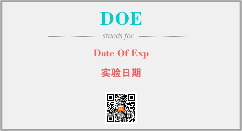 上述内容是“Date Of Exp”作为“DOE”的缩写,解释为“实验日期”时的信息,以及英文缩略词DOE所代表的英文单词,其对应的中文拼音、详细解释以及在英文中的流行度和相关分类、应用领域及应用示例等。