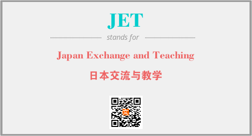 上述内容是“Japan Exchange and Teaching”作为“JET”的缩写,解释为“日本交流与教学”时的信息,以及英文缩略词JET所代表的英文单词,其对应的中文拼音、详细解释以及在英文中的流行度和相关分类、应用领域及应用示例等。