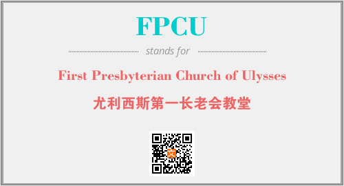 英文缩略词“FPCU”经常作为“First Presbyterian Church of Ulysses”的英文缩写来使用,中文表示:“尤利西斯第一长老会教堂”。本文将详细介绍英文缩写词FPCU所代表英文单词,其对应的中文拼音、详细解释以及在英语中的流行度。此外,还有关于缩略词FPCU的分类、应用领域及相关应用示例等。