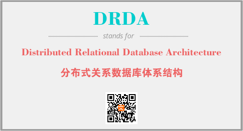 上述内容是“Distributed Relational Database Architecture”作为“DRDA”的缩写,解释为“分布式关系数据库体系结构”时的信息,以及英文缩略词DRDA所代表的英文单词,其对应的中文拼音、详细解释以及在英文中的流行度和相关分类、应用领域及应用示例等。
