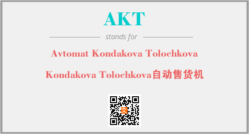 上述内容是“Avtomat Kondakova Tolochkova”作为“AKT”的缩写,解释为“Kondakova Tolochkova自动售货机”时的信息,以及英文缩略词AKT所代表的英文单词,其对应的中文拼音、详细解释以及在英文中的流行度和相关分类、应用领域及应用示例等。