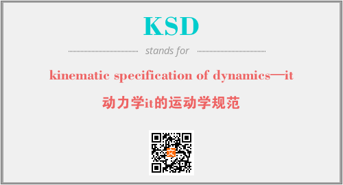 上述内容是“kinematic specification of dynamics—it”作为“KSD”的缩写,解释为“动力学it的运动学规范”时的信息,以及英文缩略词KSD所代表的英文单词,其对应的中文拼音、详细解释以及在英文中的流行度和相关分类、应用领域及应用示例等。