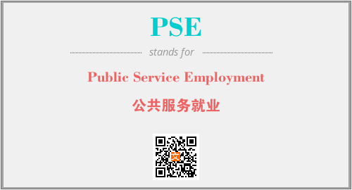 上述内容是“Public Service Employment”作为“PSE”的缩写,解释为“公共服务就业”时的信息,以及英文缩略词PSE所代表的英文单词,其对应的中文拼音、详细解释以及在英文中的流行度和相关分类、应用领域及应用示例等。