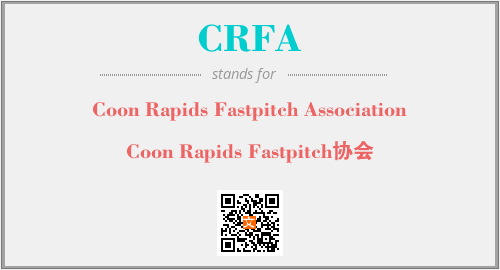 上述内容是“Coon Rapids Fastpitch Association”作为“CRFA”的缩写,解释为“Coon Rapids Fastpitch协会”时的信息,以及英文缩略词CRFA所代表的英文单词,其对应的中文拼音、详细解释以及在英文中的流行度和相关分类、应用领域及应用示例等。