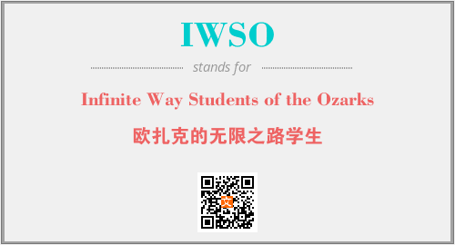 上述内容是“Infinite Way Students of the Ozarks”作为“IWSO”的缩写,解释为“欧扎克的无限之路学生”时的信息,以及英文缩略词IWSO所代表的英文单词,其对应的中文拼音、详细解释以及在英文中的流行度和相关分类、应用领域及应用示例等。